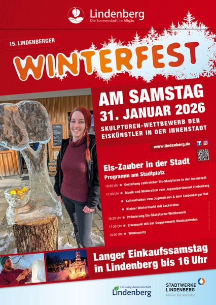 Am Samstag, 31. Januar 2026, verwandelt sich die Lindenberger Innenstadt wieder in eine winterliche Erlebniswelt. Bereits zum fünfzehnten Mal lädt die Stadt zum beliebten Winterfest ein. In diesem Jahr gibt es eine Neuerung: Gefeiert wird erstmals auf dem zentral gelegenen Stadtplatz. Von dort aus zieht sich das Festgeschehen durch die gesamte Innenstadt.